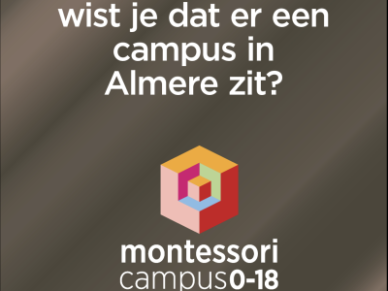 Op de Montessori Campus 0-18 hebben we naast kinderdagverblijf en peuterspeelzaal, primair onderwijs en voortgezet onderwijs. In het voortgezet onderwijs hebben we de niveaus mavo, havo en vwo. Wij bieden en ontwikkelen dagelijks hedendaags bijzonder onderwijs gebaseerd op de onderwijskundige grondslag van dr. Maria Montessori. Vanaf augustus 2024 zijn wij Montessori Campus 0-18 en bieden we onderwijs aan kinderen van 0-18 jaar. De school is verhuisd naar een gloednieuw gebouw in Nobelhorst.